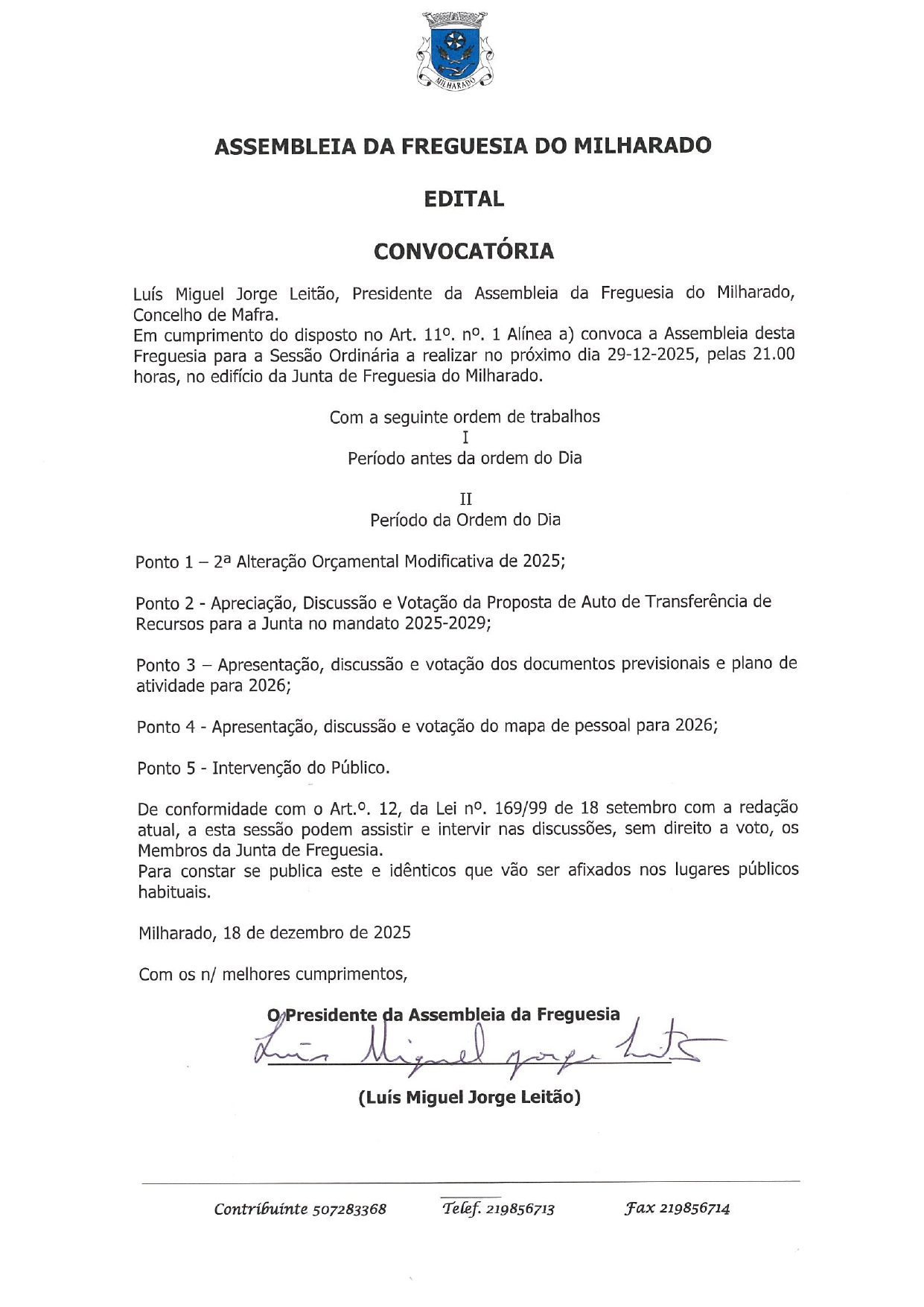 © 2026 Junta de Freguesia de Milharado. Todos os direitos reservados | Termos e Condições